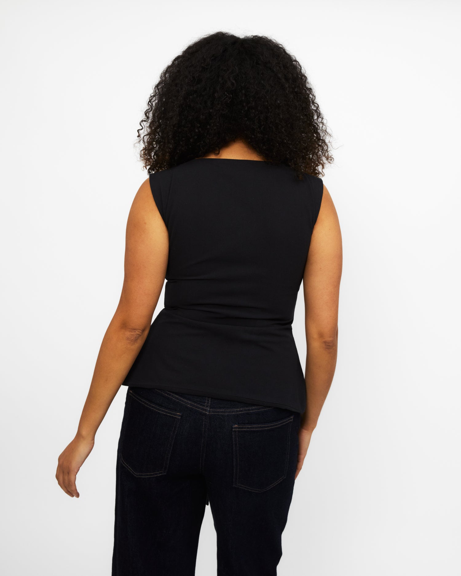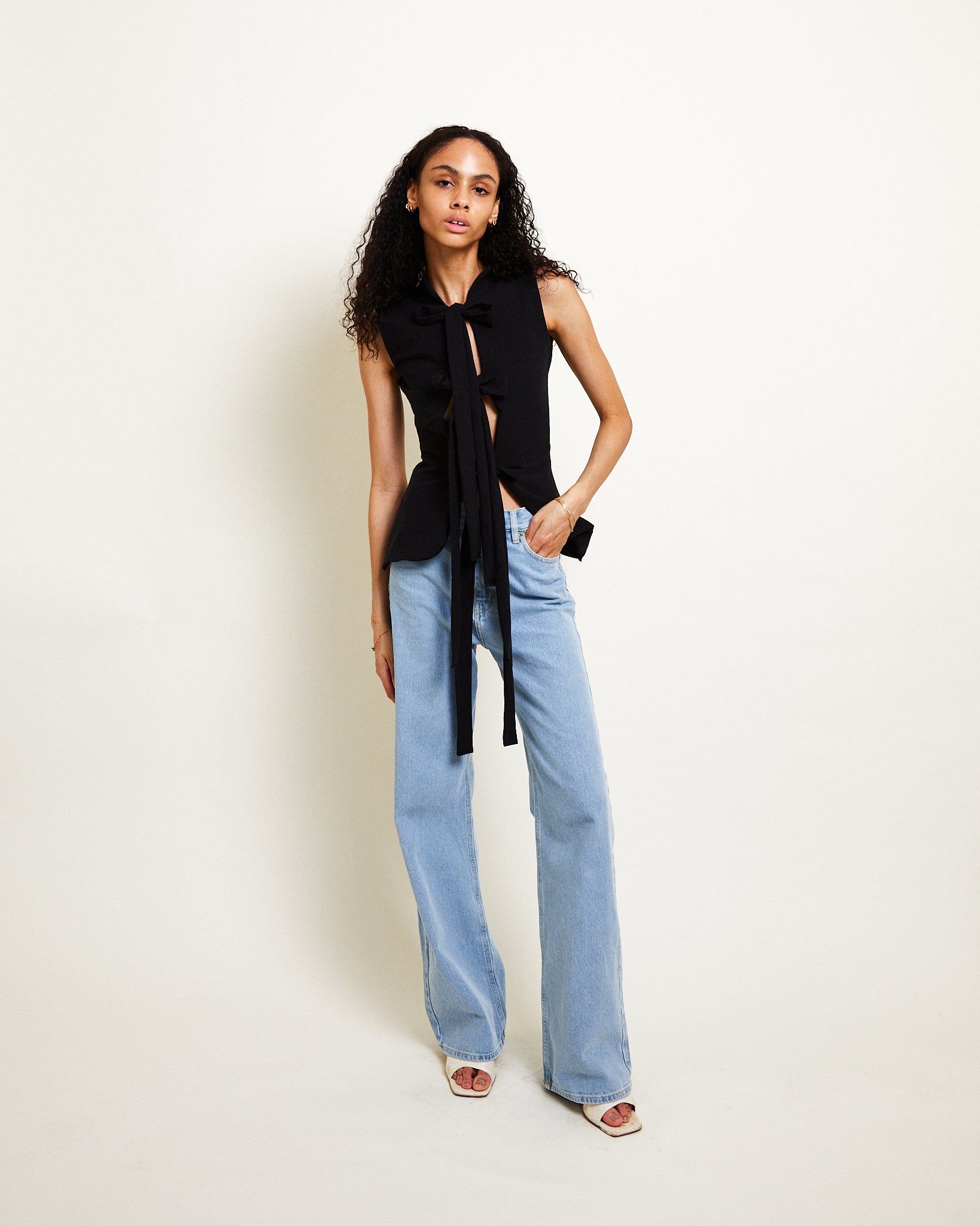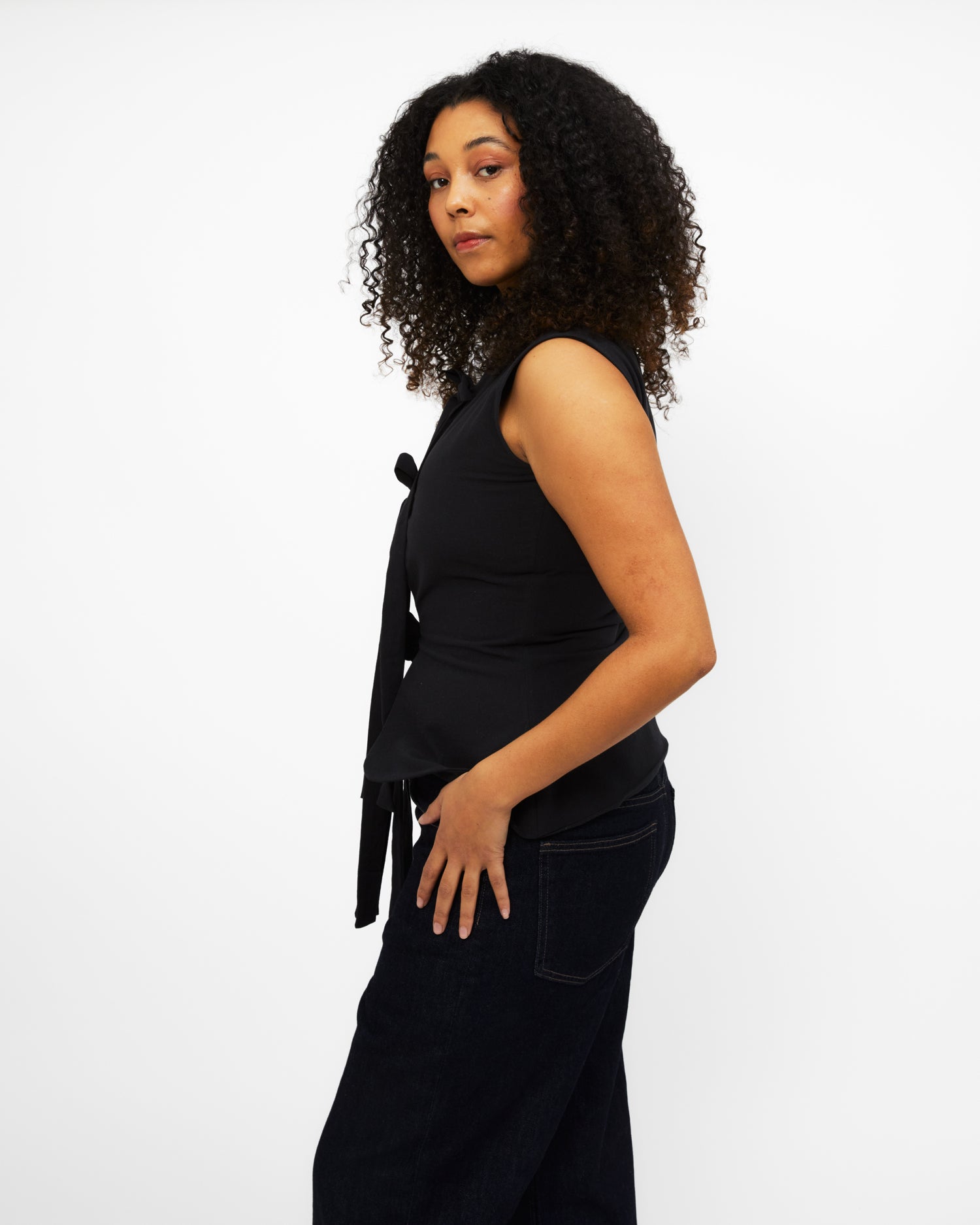 The Bowtie Vest is our signature form-fitting top, handmade in small batches in Vancouver, Canada. She is double-lined and features three bows down the centre that can be worn front or back, and adjusted to your comfort.