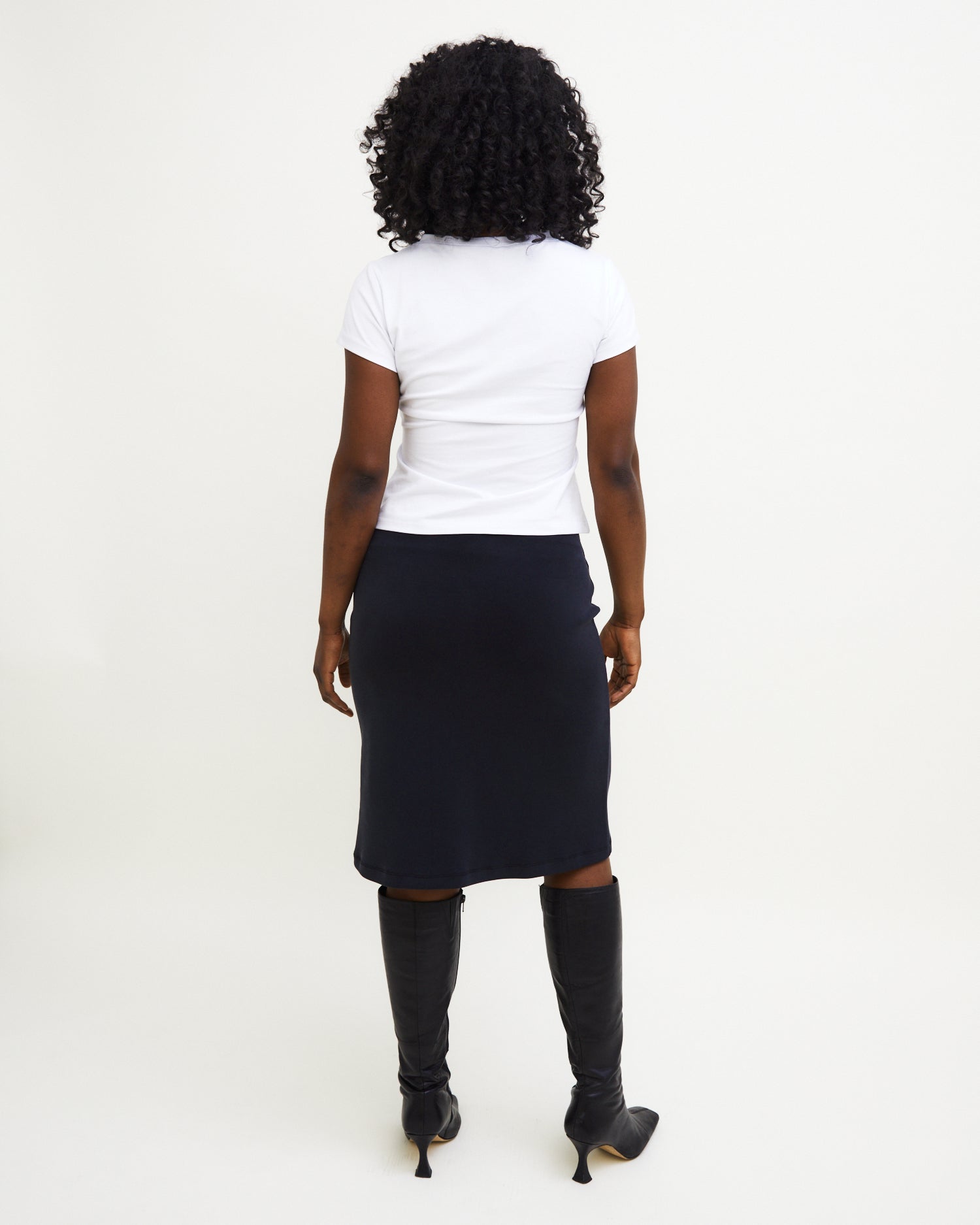 The Ease Midi Skirt is a timeless classic; easy to wear, soft-to-the-touch, and comfortable. Snug at the hips and thigh, with ease towards the hem for added practicality, this low- to-mid rise skirt accentuates the figure and can easily be taken day-to-night. Pairs perfectly with the Ease Halter.