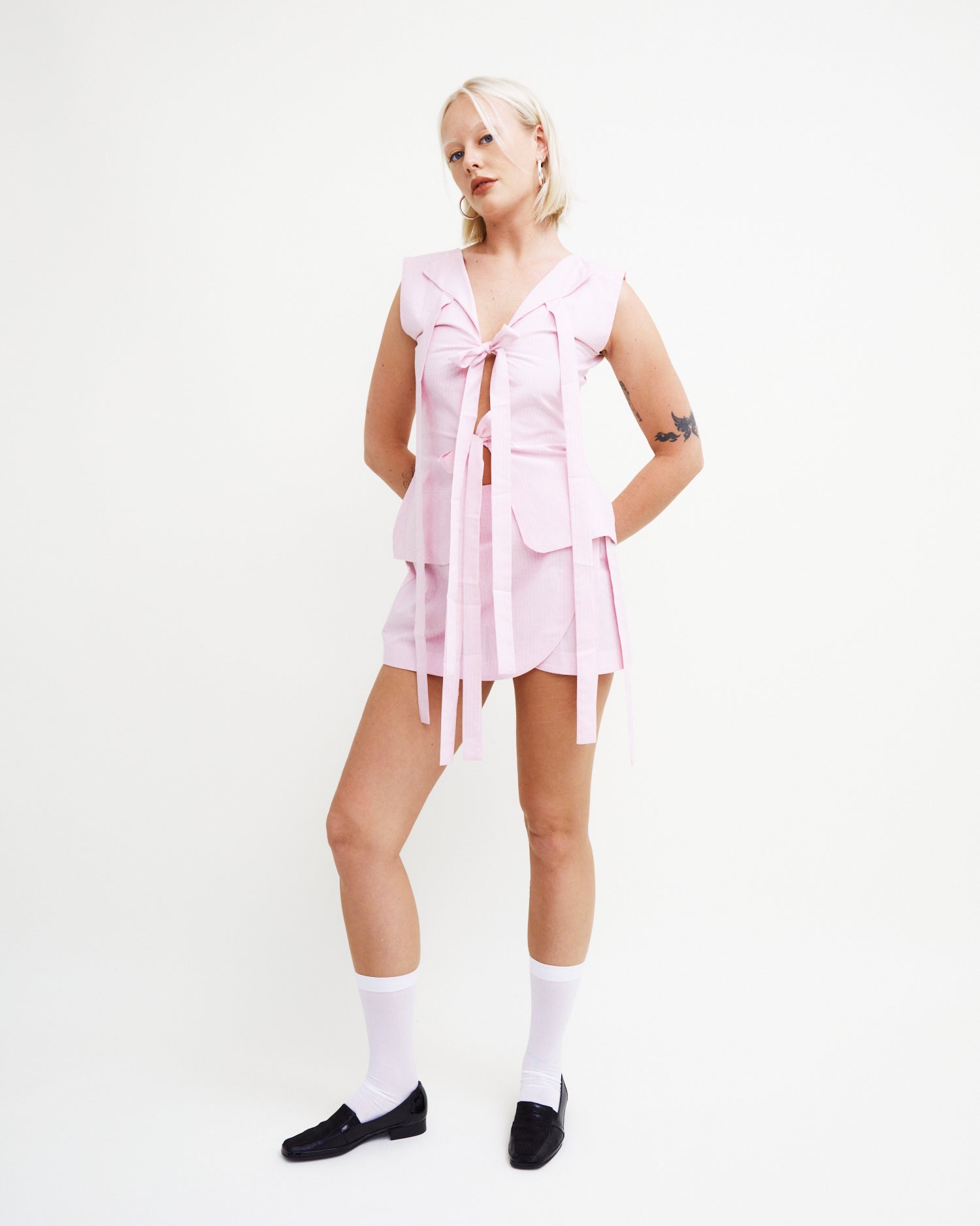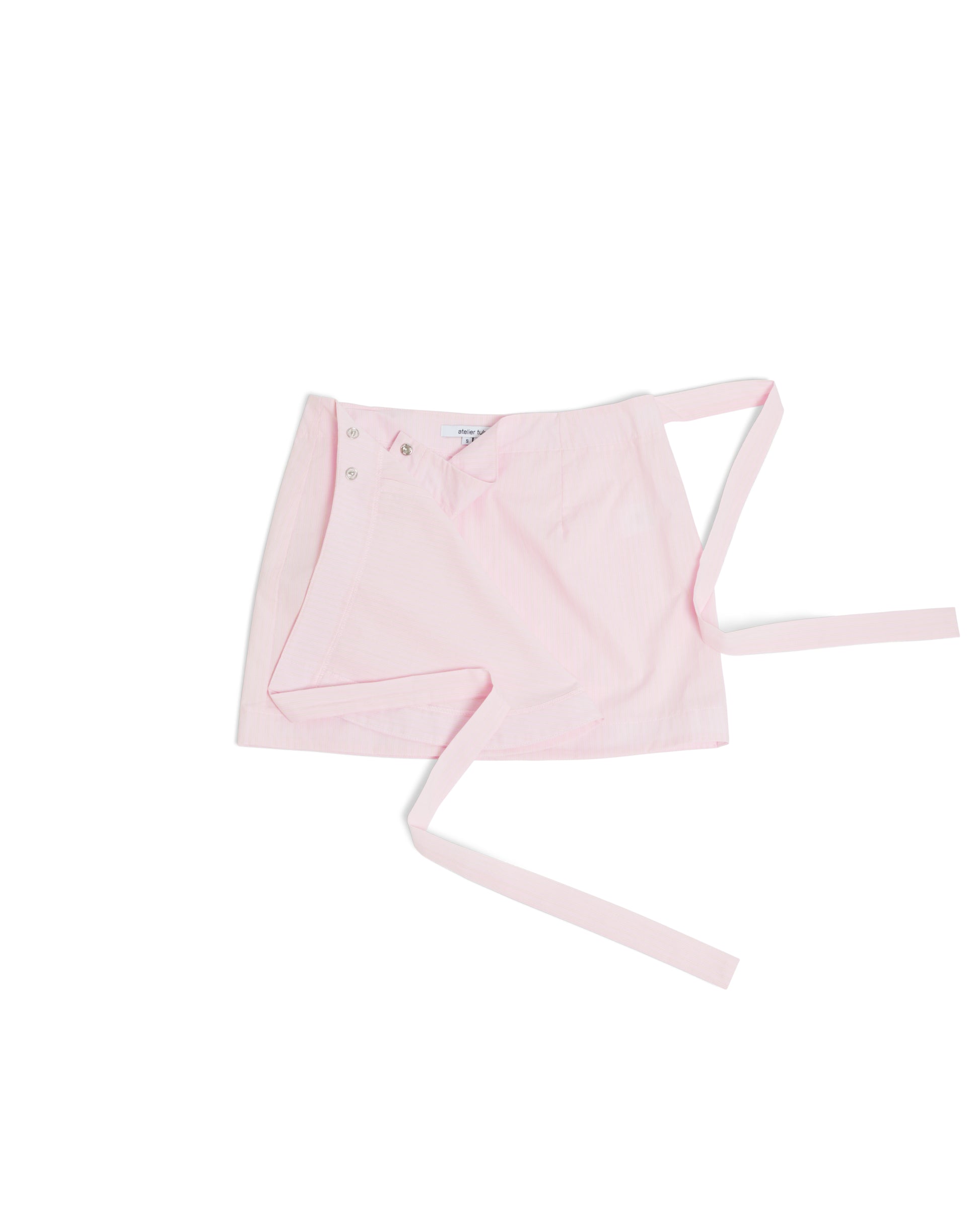 Our mini wrap is a subtle extension of our best-selling bowtie vest, and features three snaps along the inner waistband for an adjustable rise and fit. Handmade in small batches in Vancouver, Canada from 100% cotton, she is ready-to-ship and available in limited quantities.