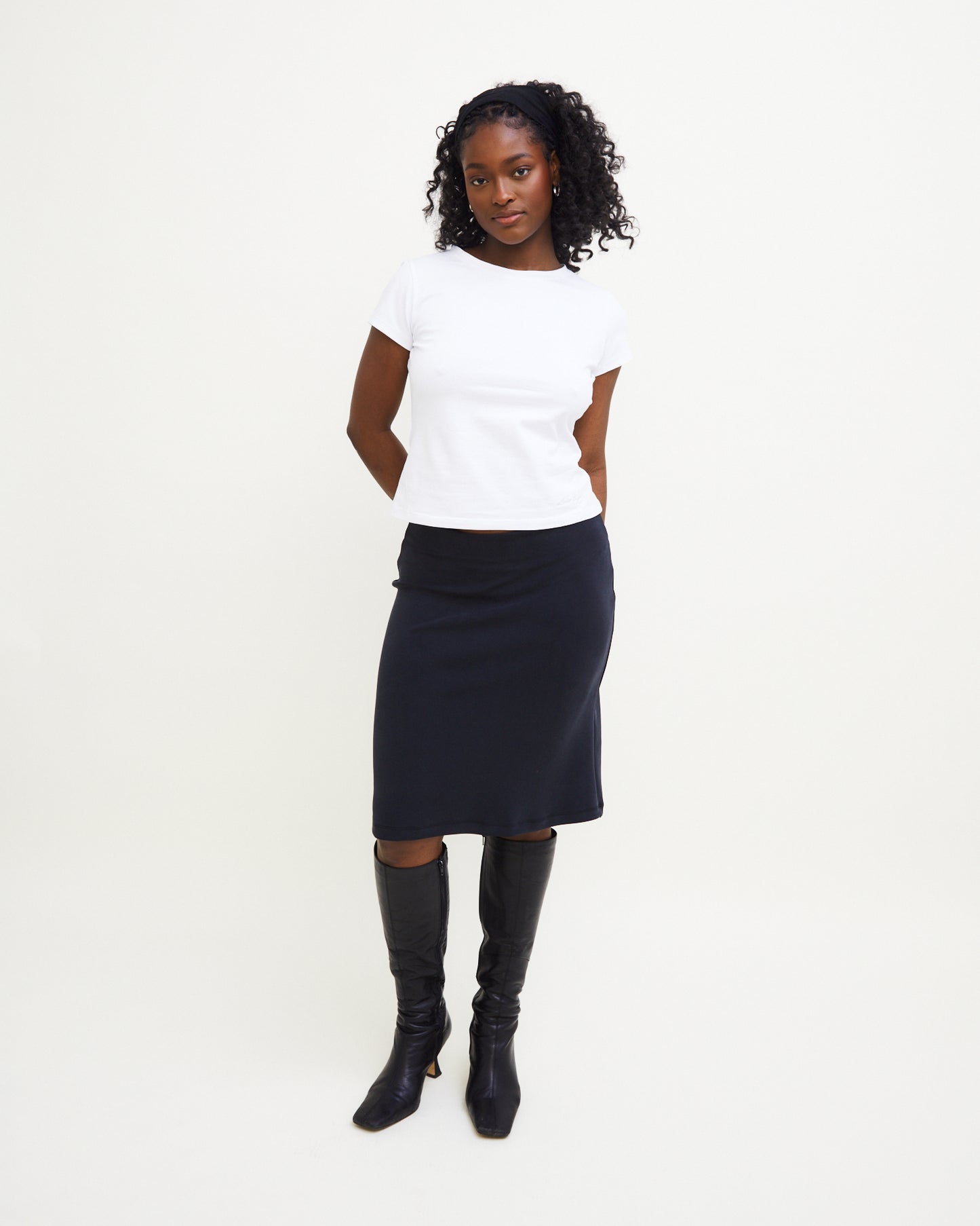 It’s official… the perfect basics do exist. It’s all in the details - an ideal length + fit, blue embroidery detail, and cap sleeves. The Uniform Tee is made from soft stretch cotton and strikes a balance between fitted and relaxed. Made with love and care in Vancouver, BC.